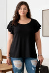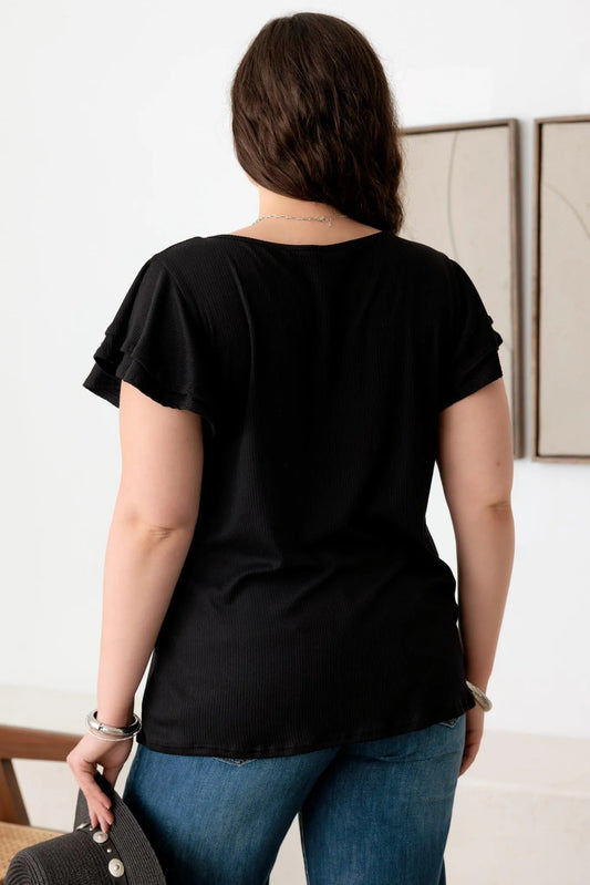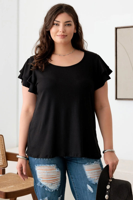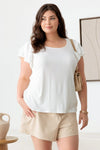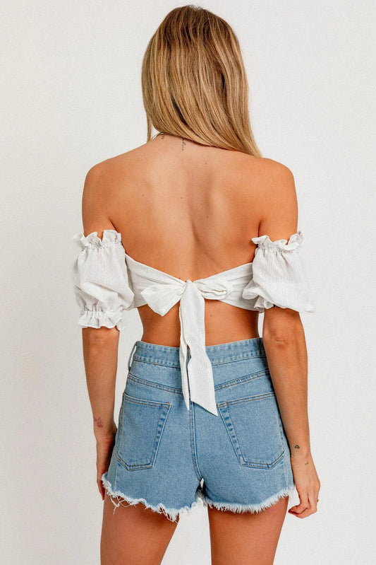 Crinkle Texture Scoop Neck Puff Sleeve Crop Top