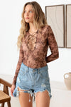 Embroidery Lace Mesh Long Top & High Waisted Shorts Set