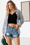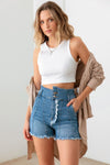 Light Blue Wash Ripped Frayed Hem Denim Shorts