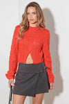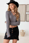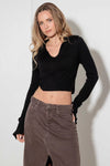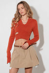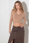 Cut Out Collared Crop Soft Long Sleeve Sweater Top