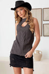 Back Cut Out Long Sleeve Ribbed Knit Sweater Bodysuit
