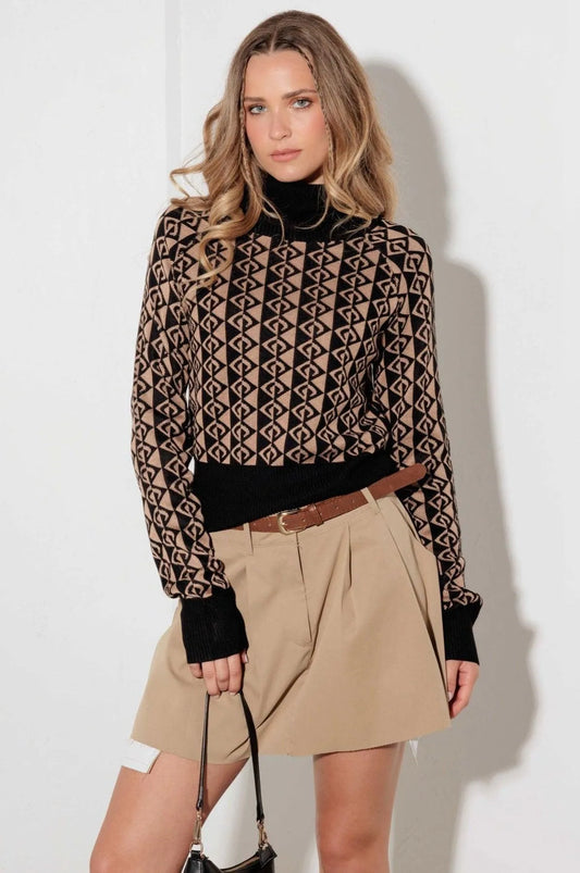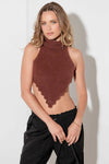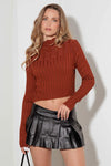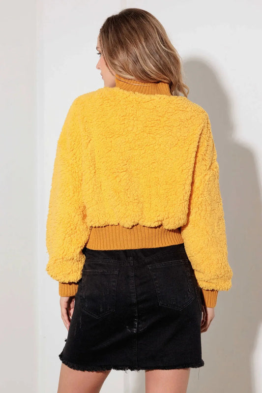 Fuzzy Ribbed Mock Neck Turtle Neck Teddy Crop Sweater