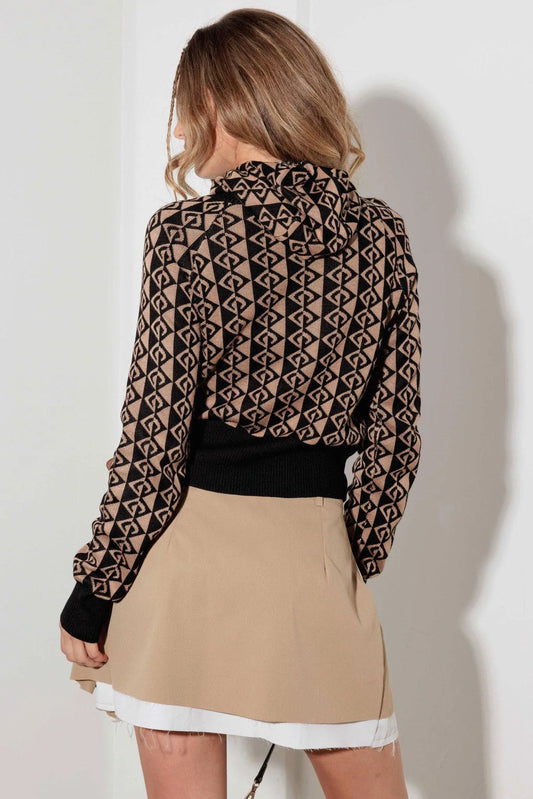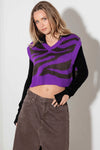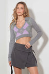 Argyle Collared V-Neck Long Sleeve Crop Sweater