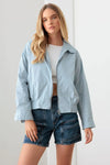 Baby Blue 100% Cotton Zip Up Collared Boxy Jacket