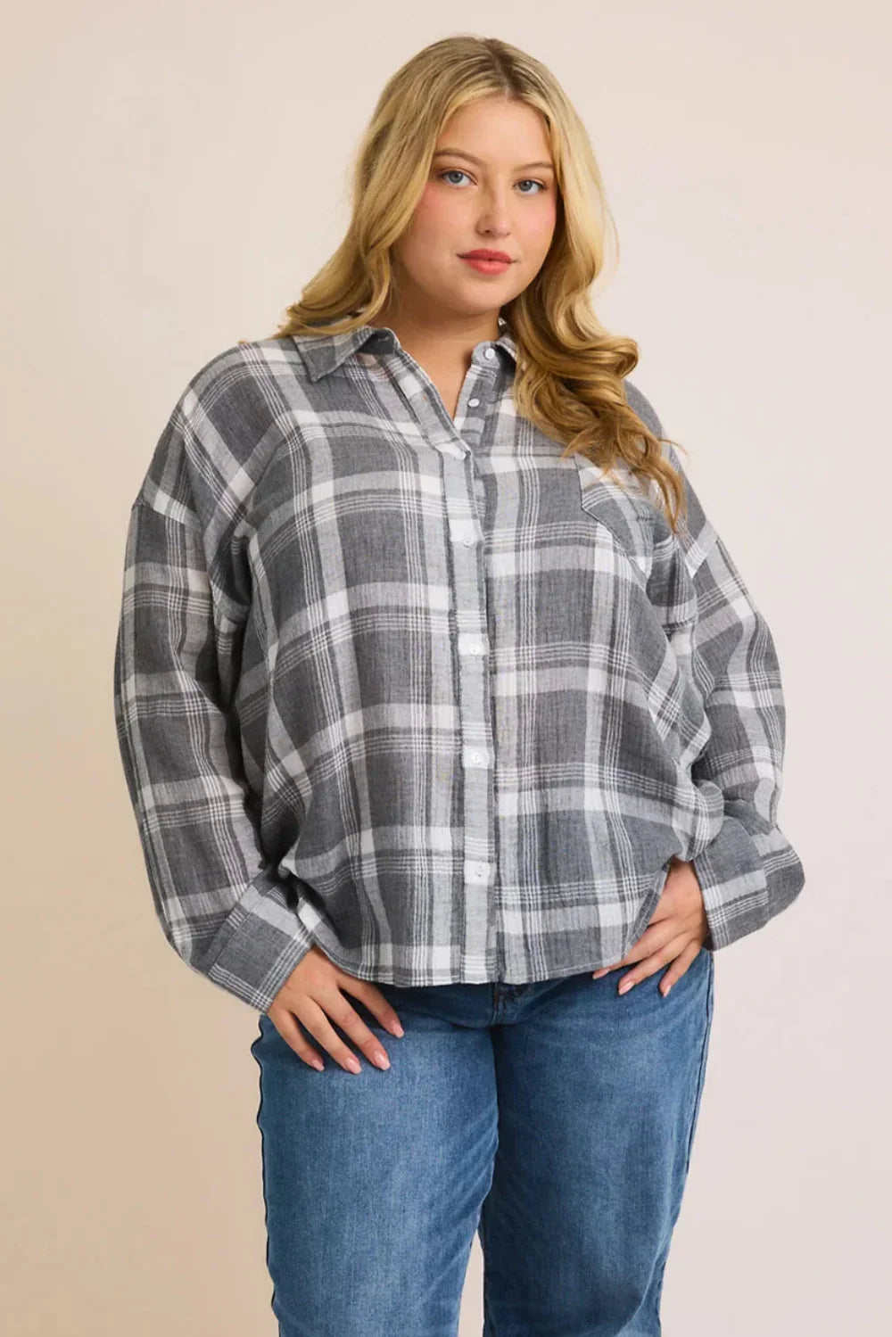 Plus Size Green Plaid Oversized Boutique Casual Layering ShacketVendor:White Birch