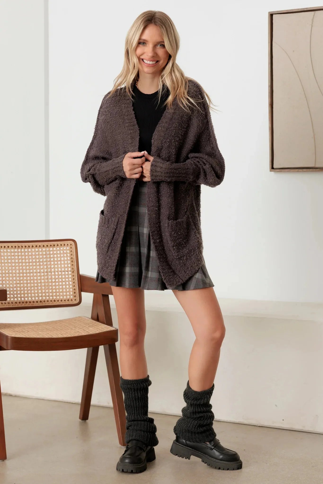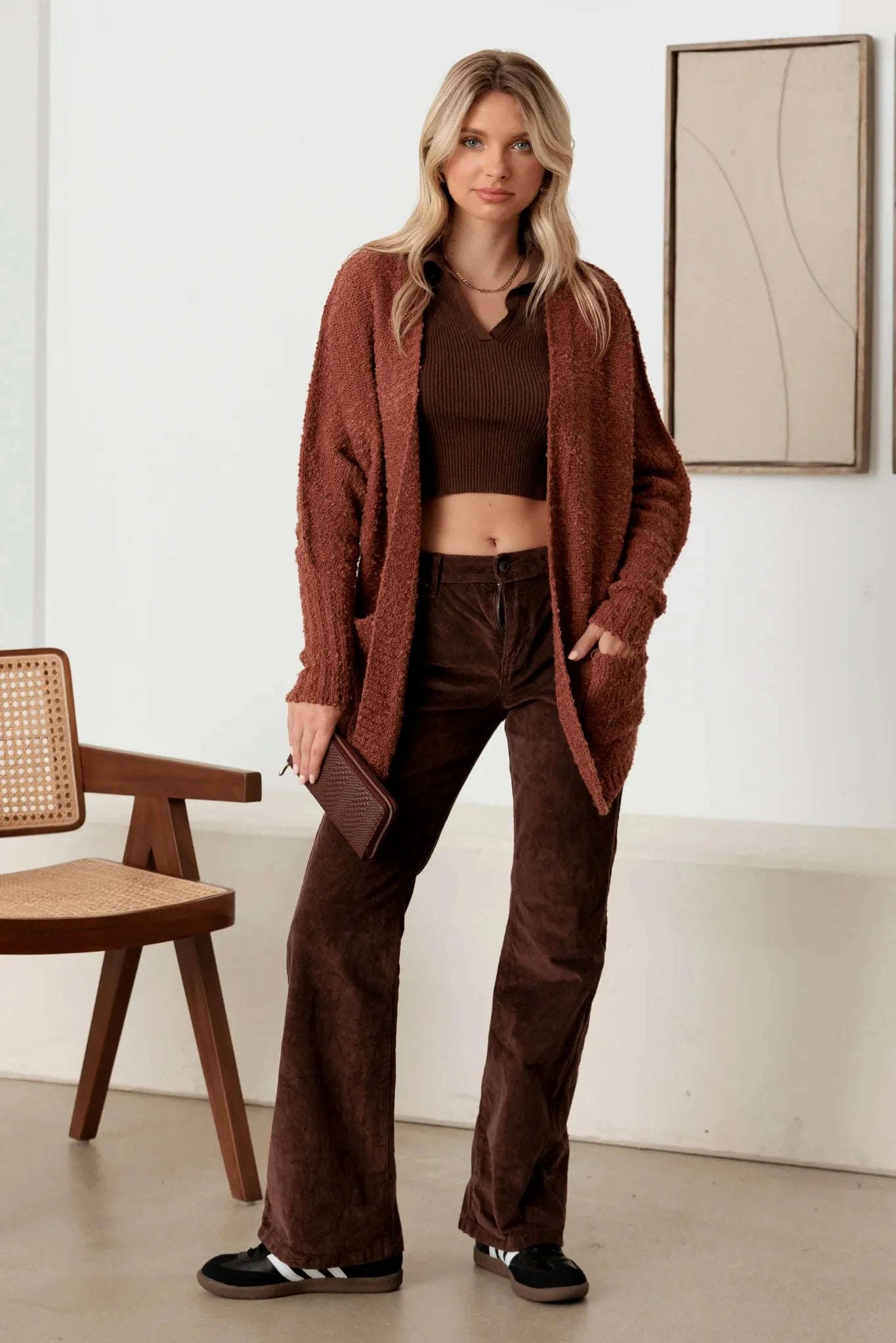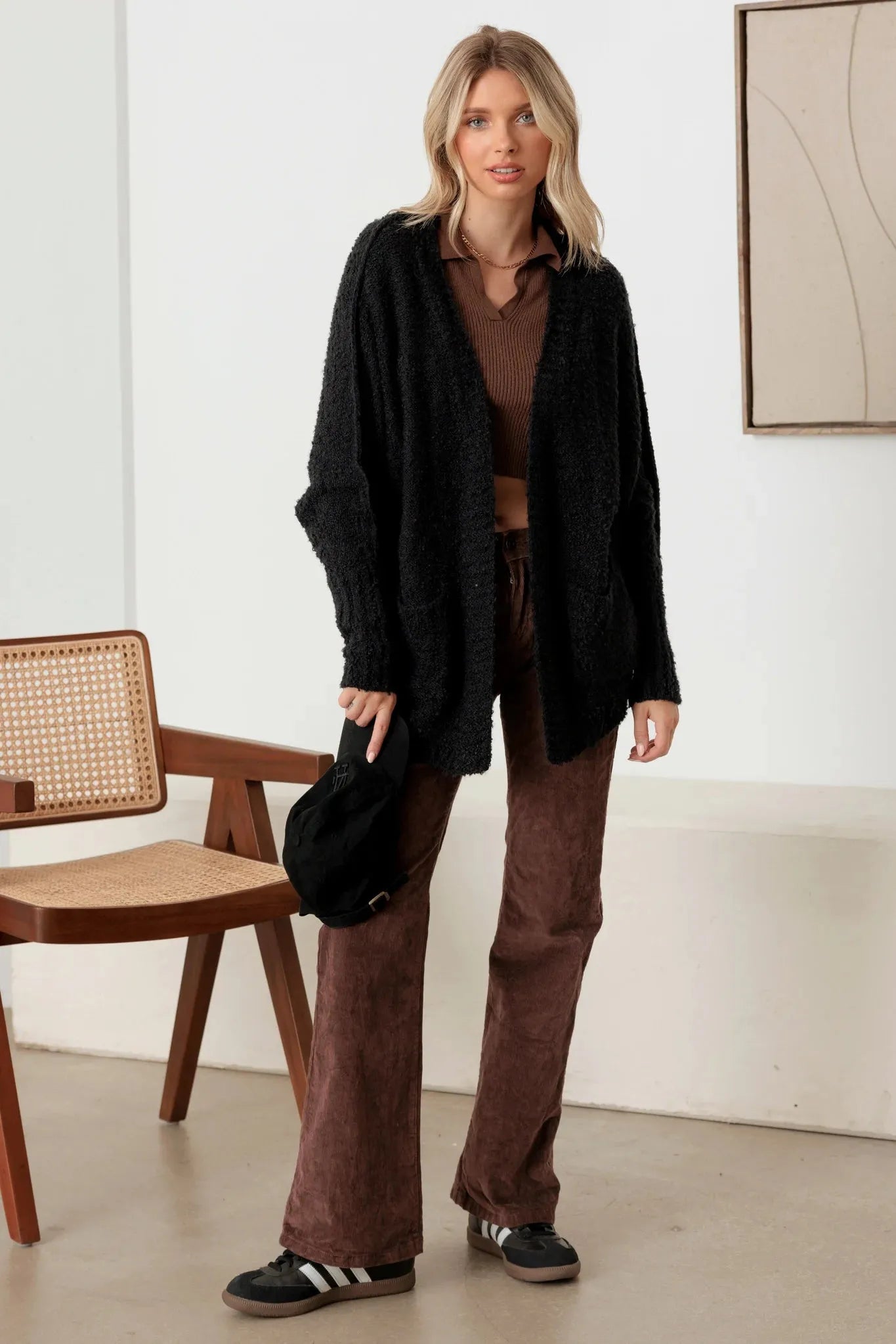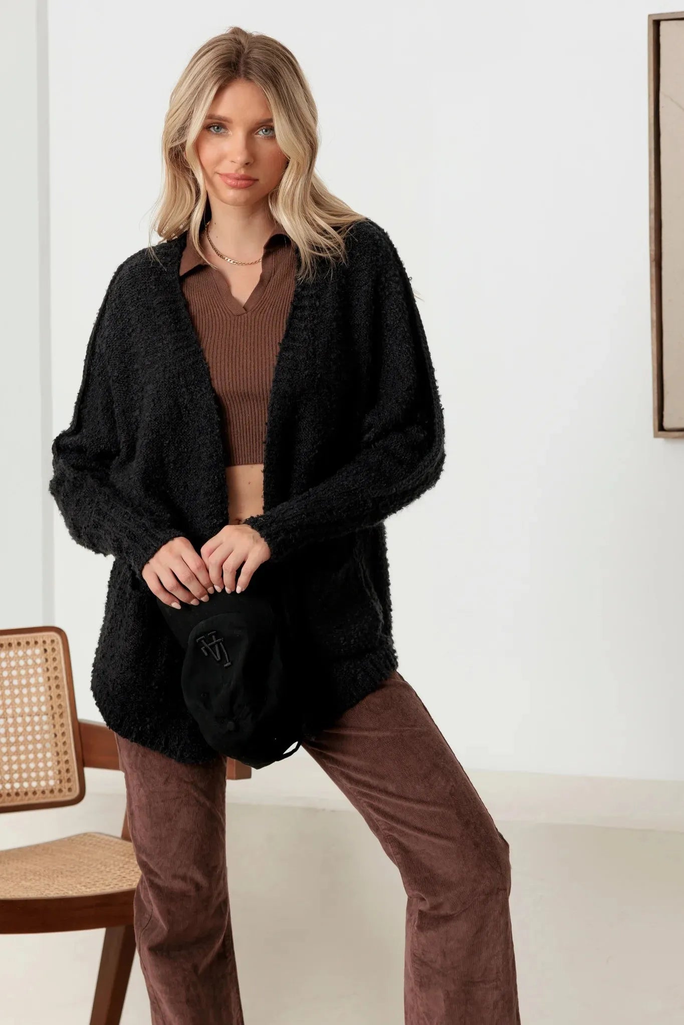 This luxurious open front cardigan is crafted from a textured knit fabric, delivering both comfort and sophistication. Complete with two pockets for added convenience, it is the perfect addition to any wardrobe. Elevate your style and stay cozy with this Knit Textured Two Pocket Open Front Cardigan.