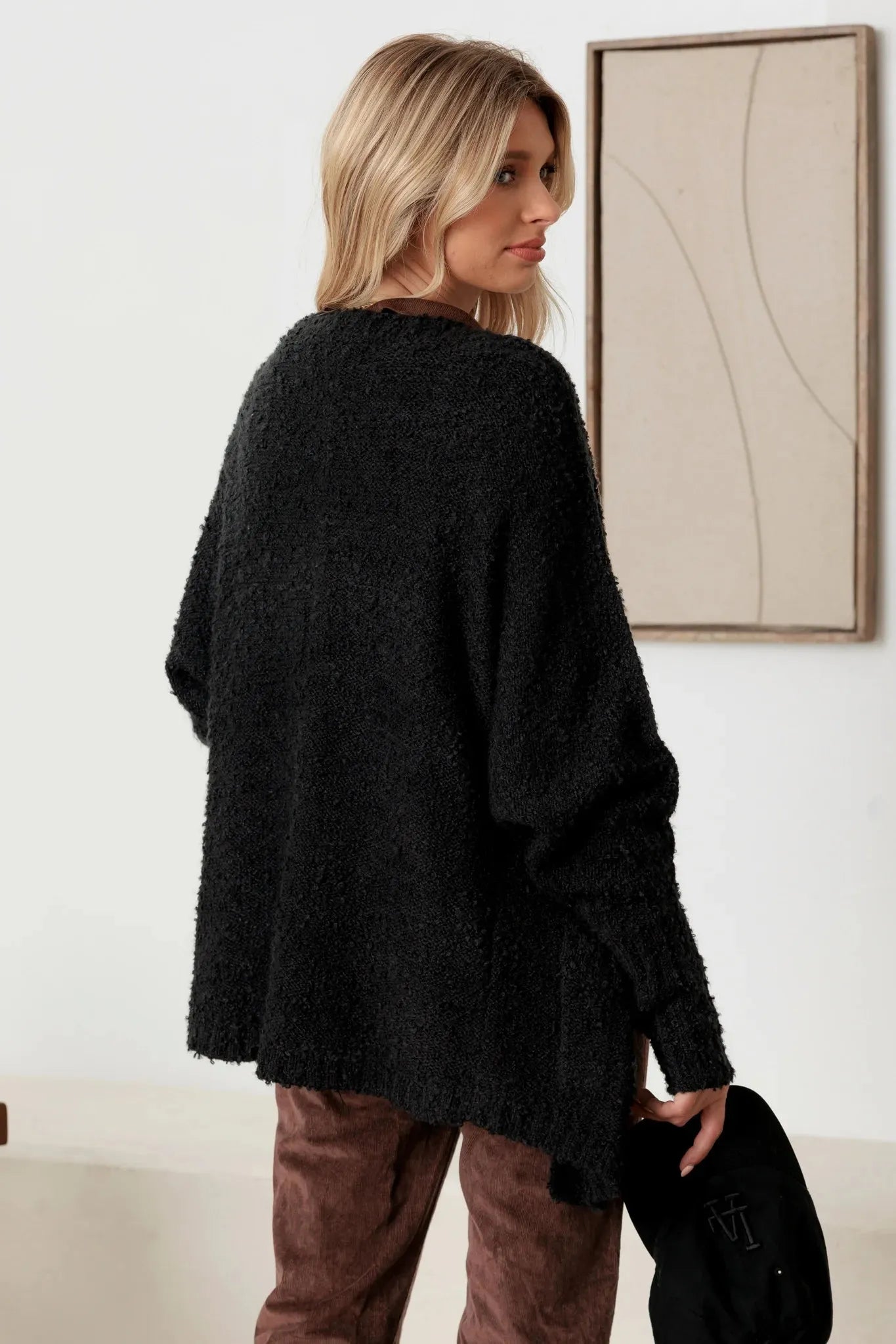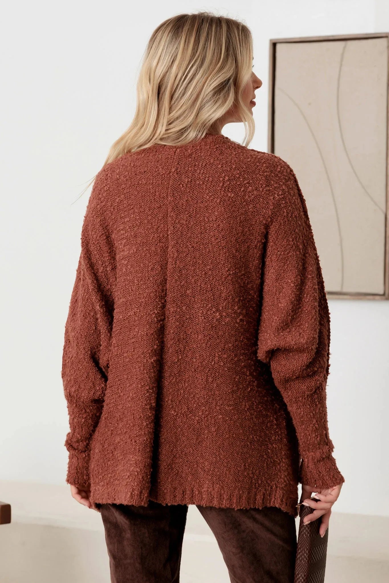 Popcorn Knit Long Sleeve Round Neckline Cozzy SweaterVendor:Blue Buttercup