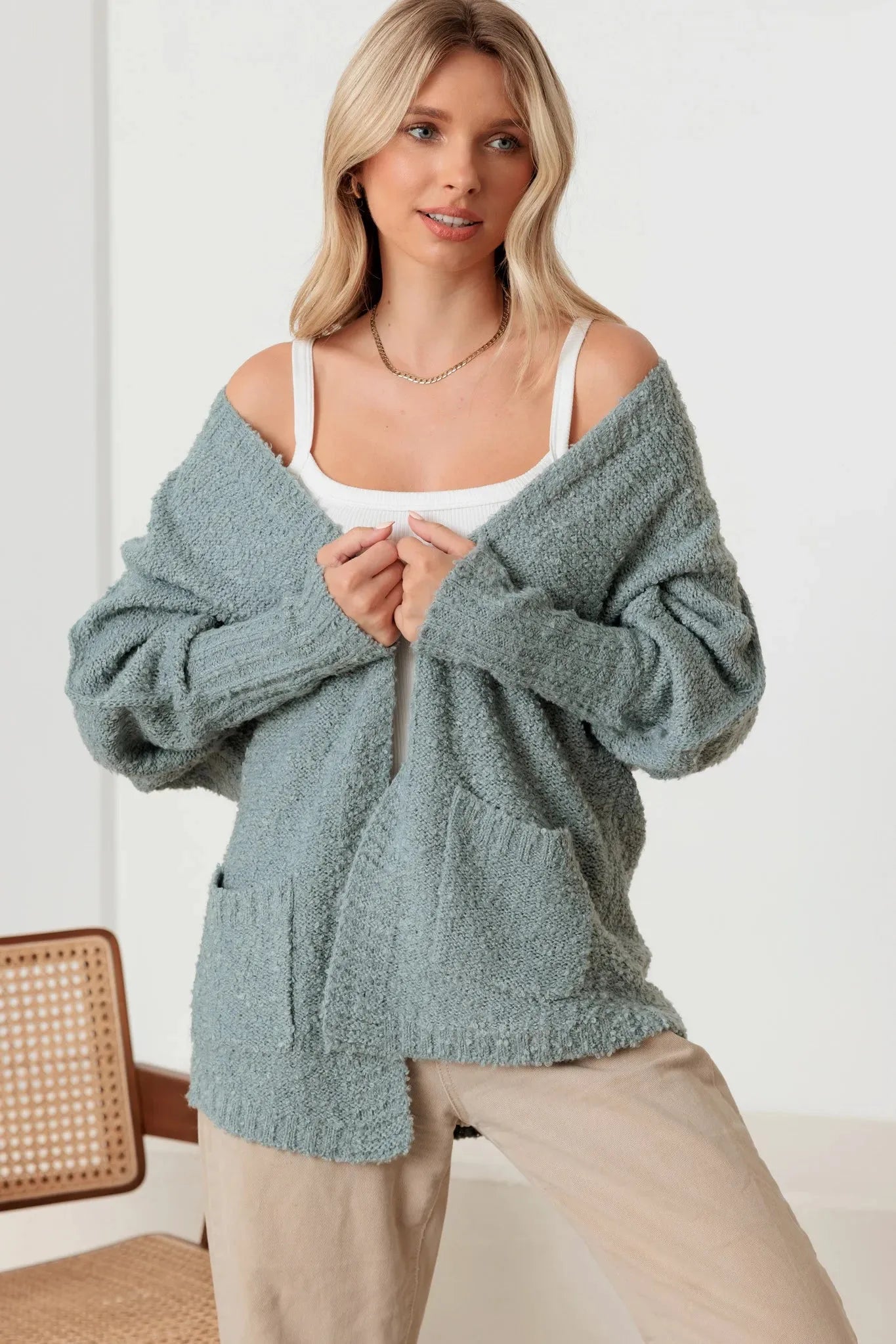 Trendy Popcorn Knit Open Front Cozy Lightweight Oversized Cardigan SweaterVendor:Blue Buttercup
