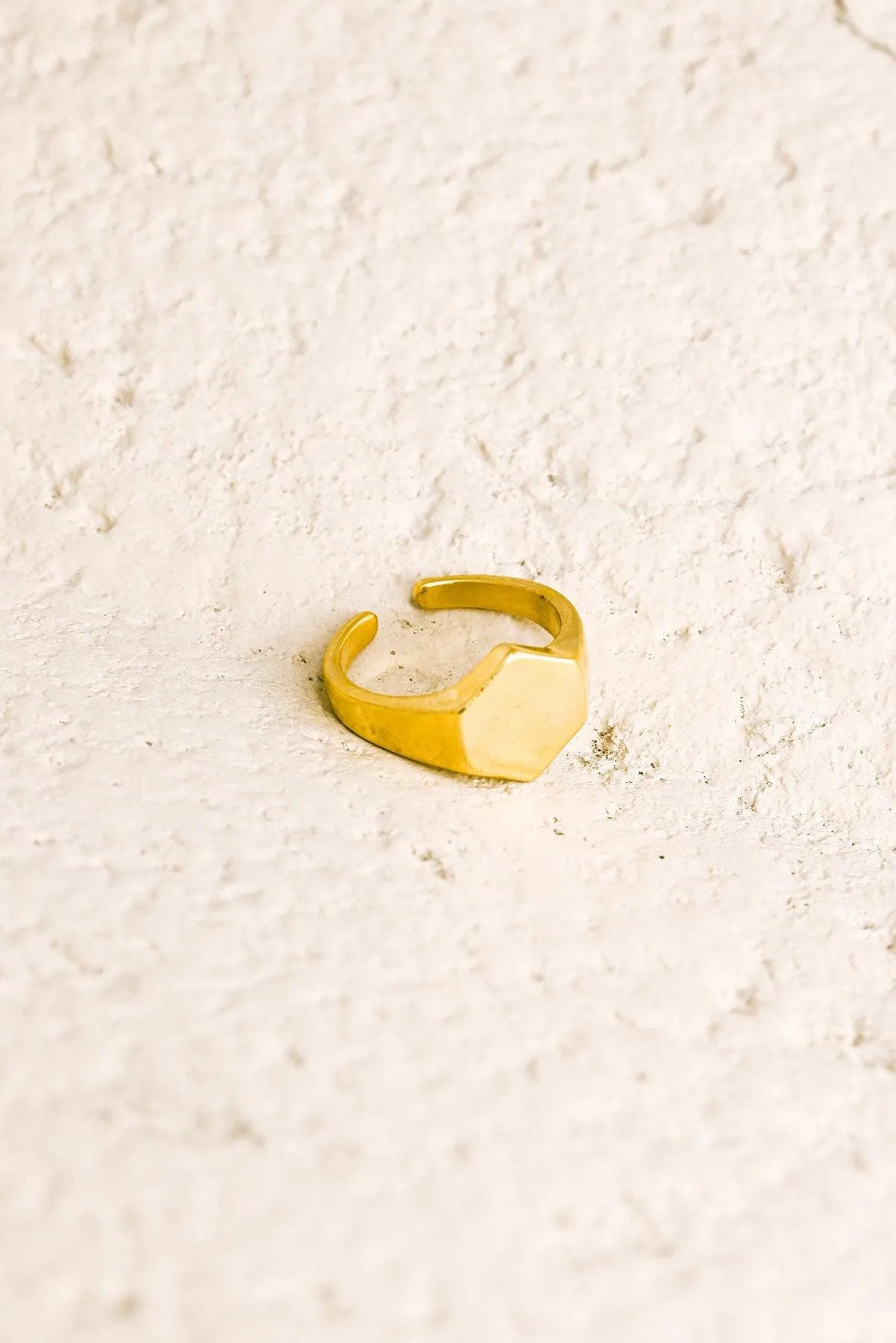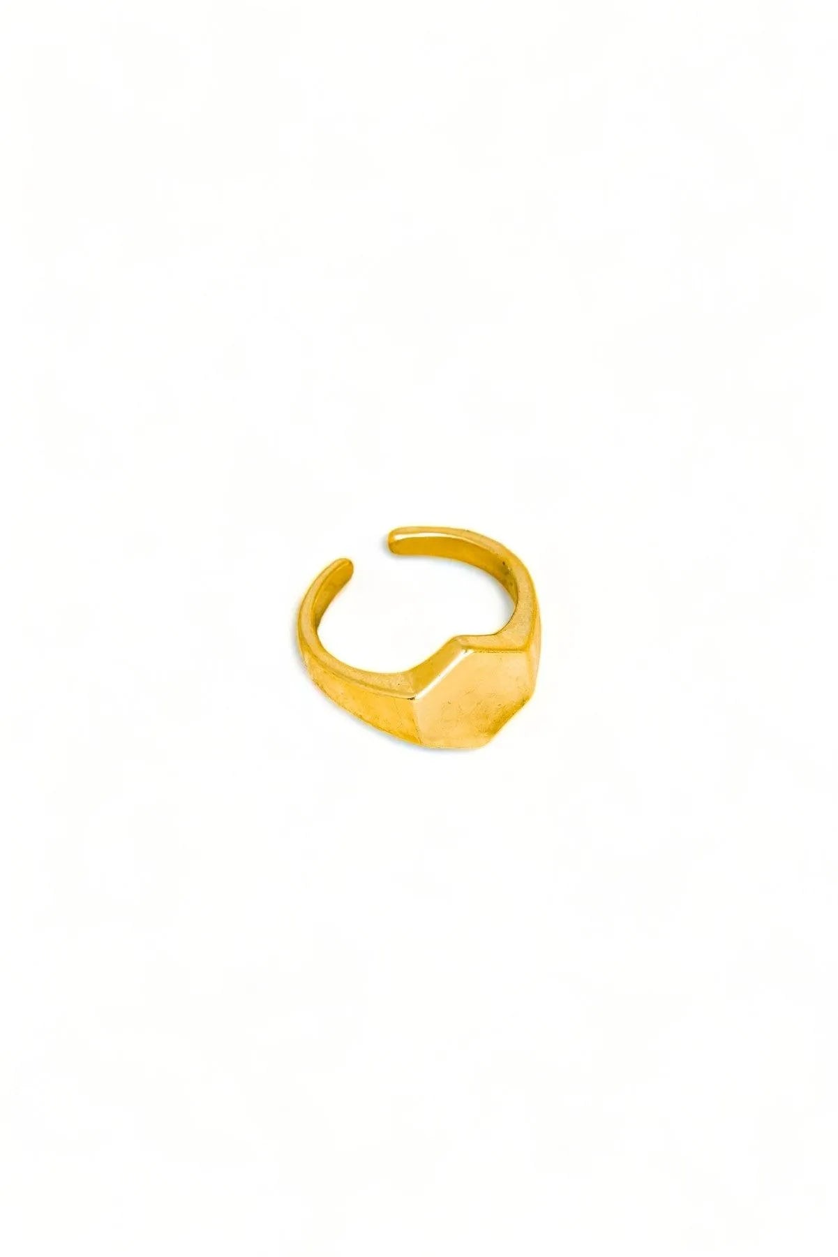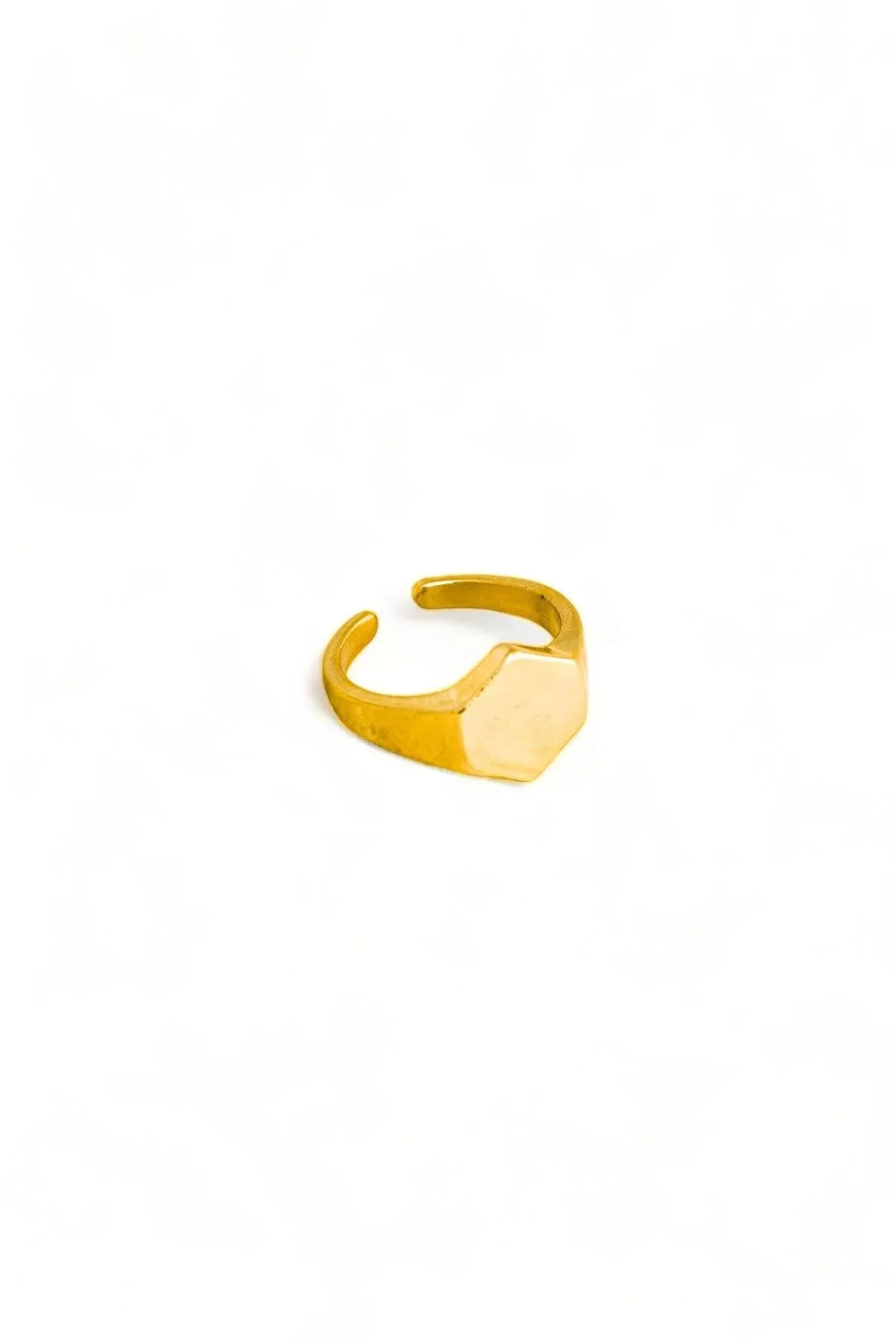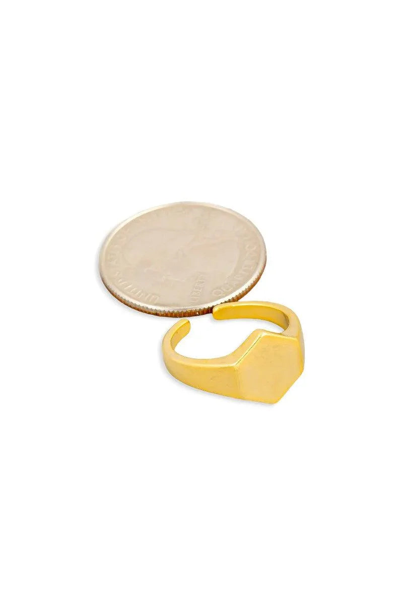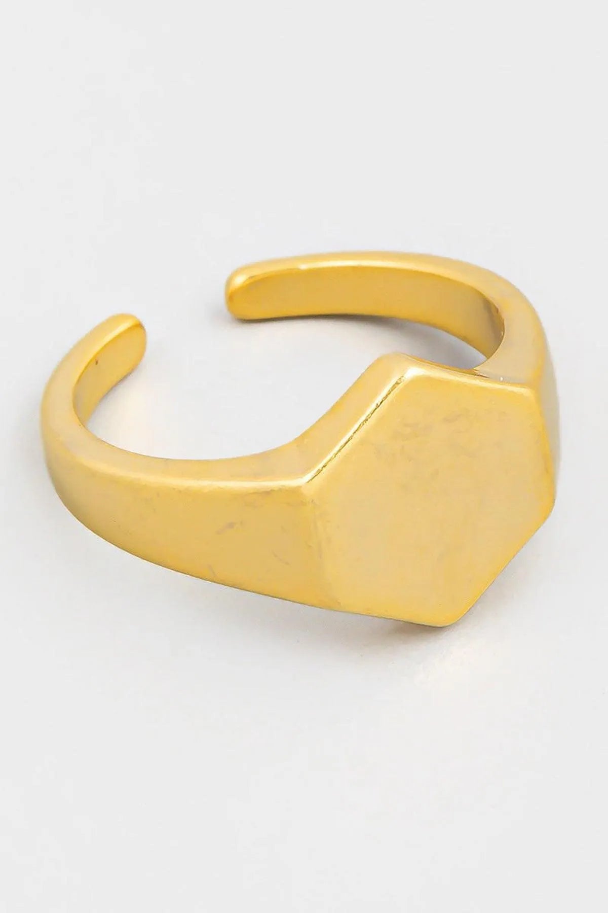 🖤 Add some edgy style to your wardrobe with our Metallic Hexagon Signet Fashion Ring. The unique hexagon shape and metallic finish make this ring a statement piece for any outfit. Elevate your fashion game with this quirky and playful accessory.
