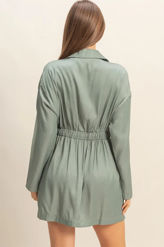 Sage Green Oversized Double Breasted Cinched Waist Blazer Mini DressVendor:HYFVE