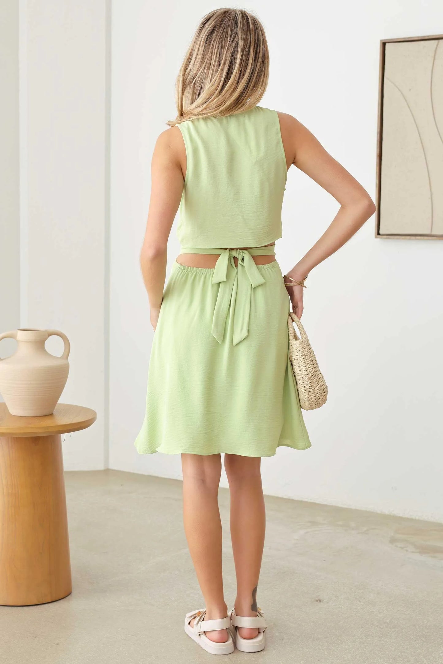 🖤 This sassy Sleeveless Waist Open Back Tie Dress in lime adds a pop of color to your wardrobe. Show off your waist and back with this flirty design. Perfect for a day out with friends or a summer date night.