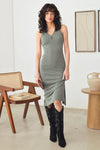 Ribbed Sleeveless Back Criss Cross Back Slit Midi Dress
