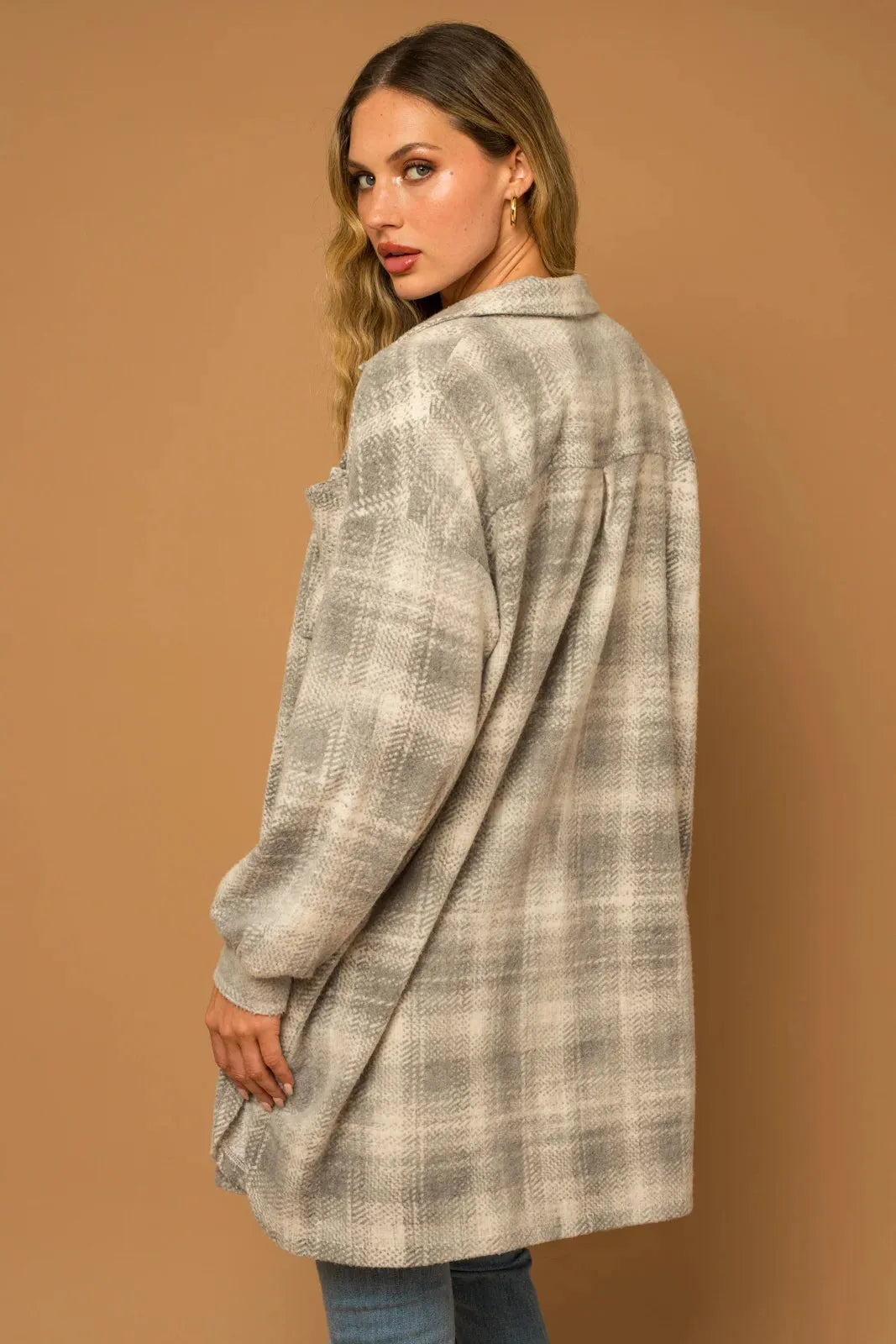 Fleece Oversize Plaid Side Pocket Warm Shacket
