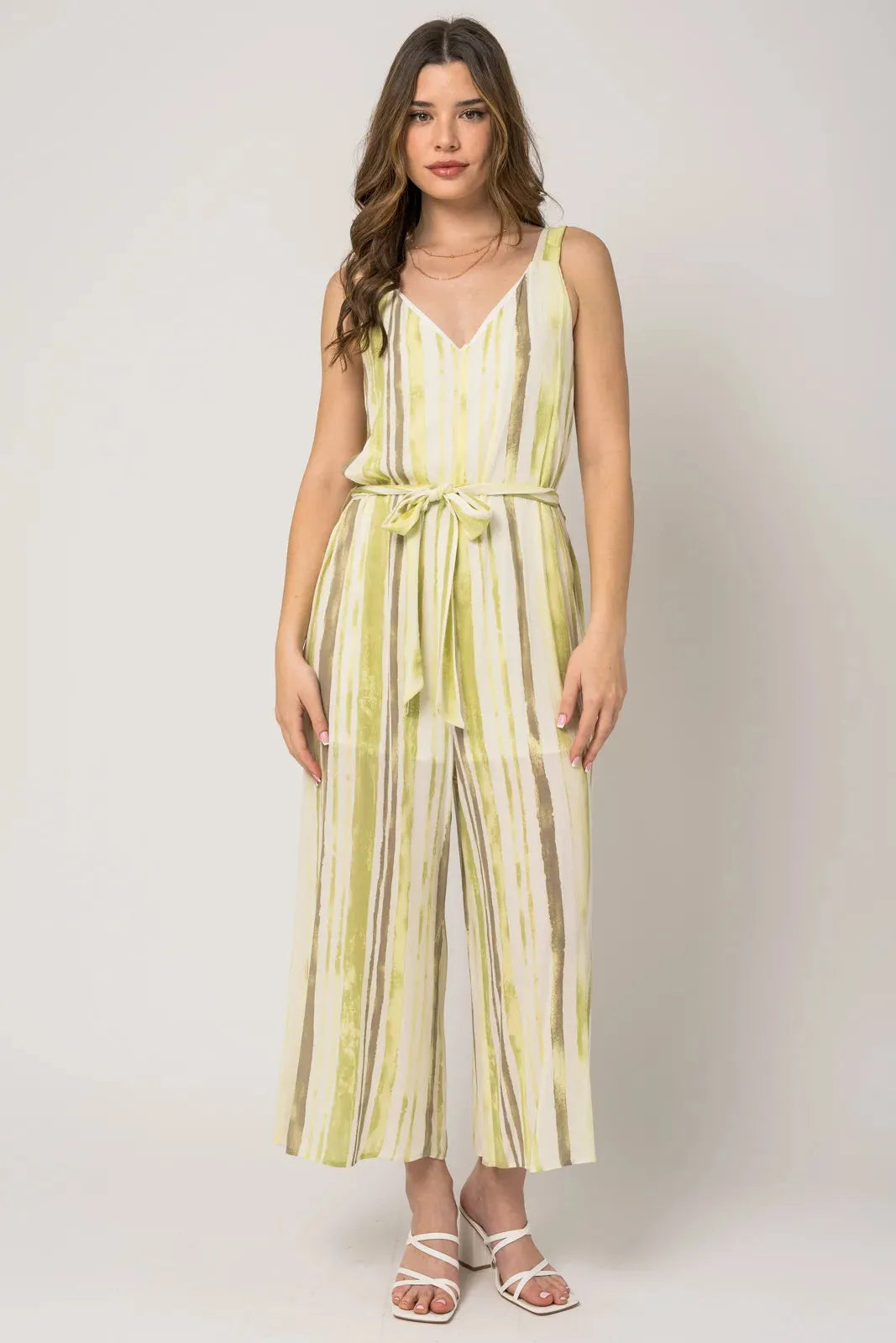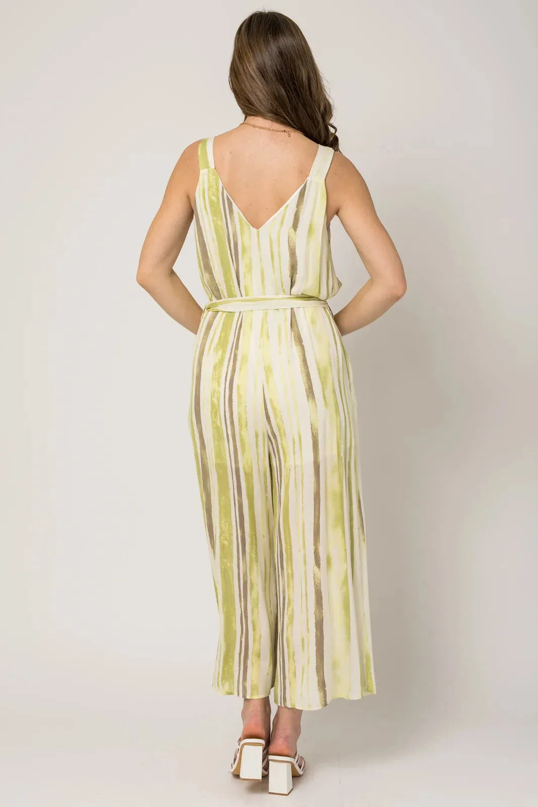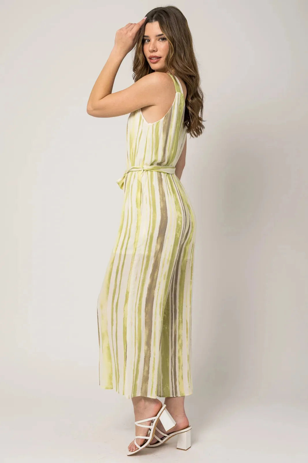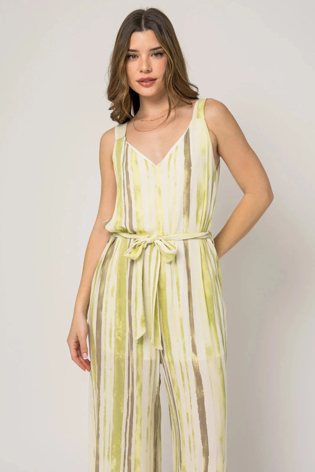 Sleeveless Waist Tie Wide Leg V-Neck Stripe Jumpsuit