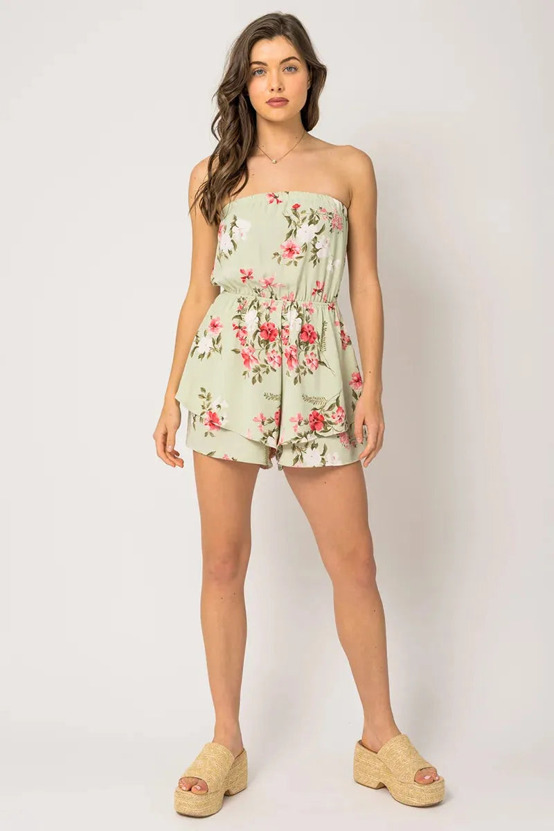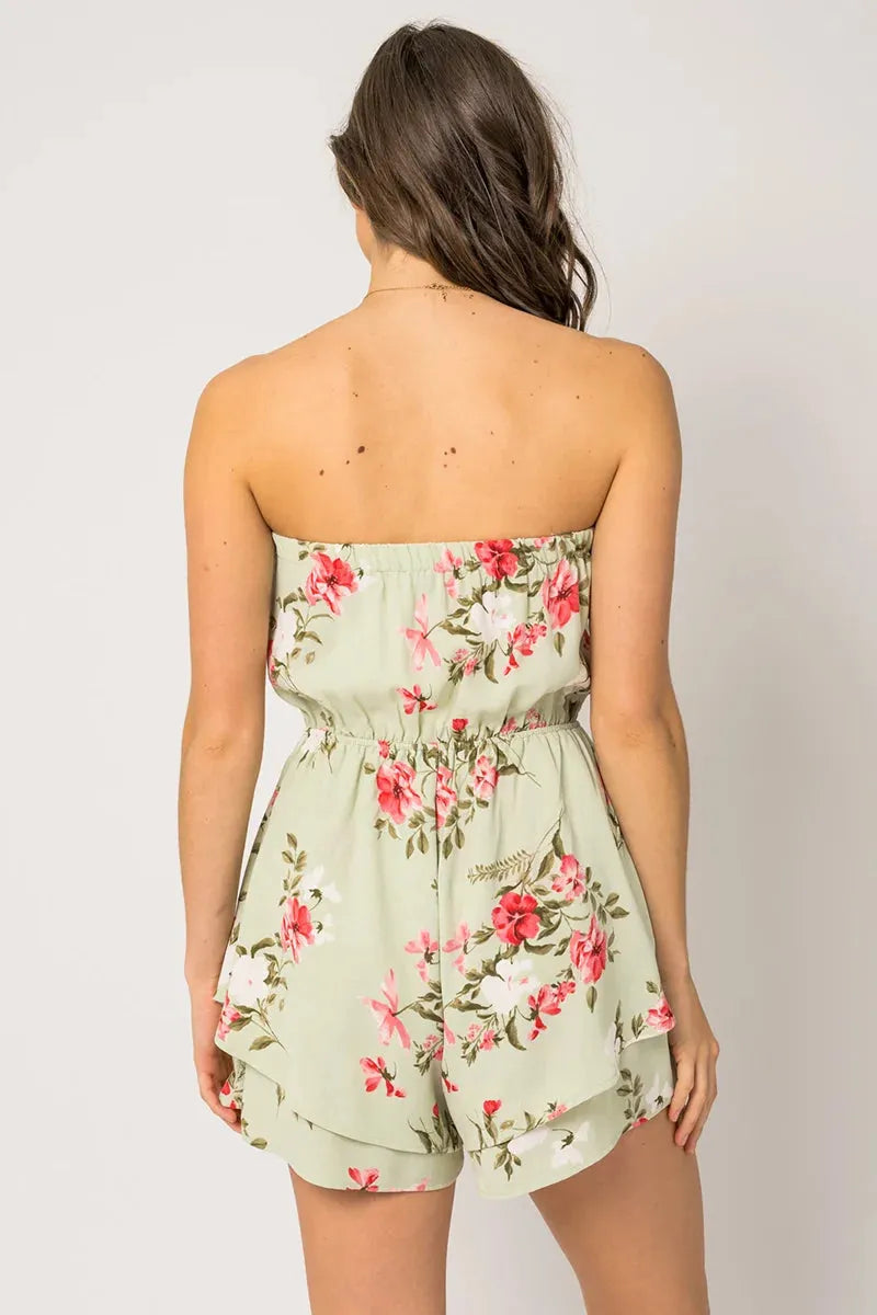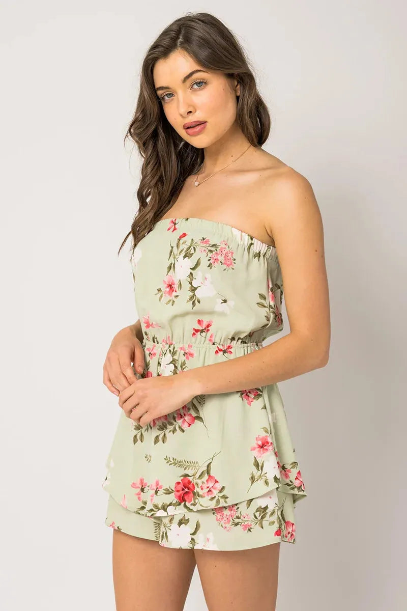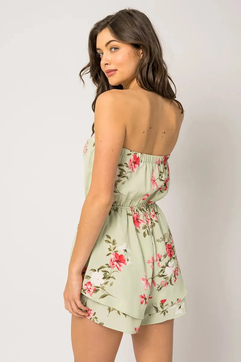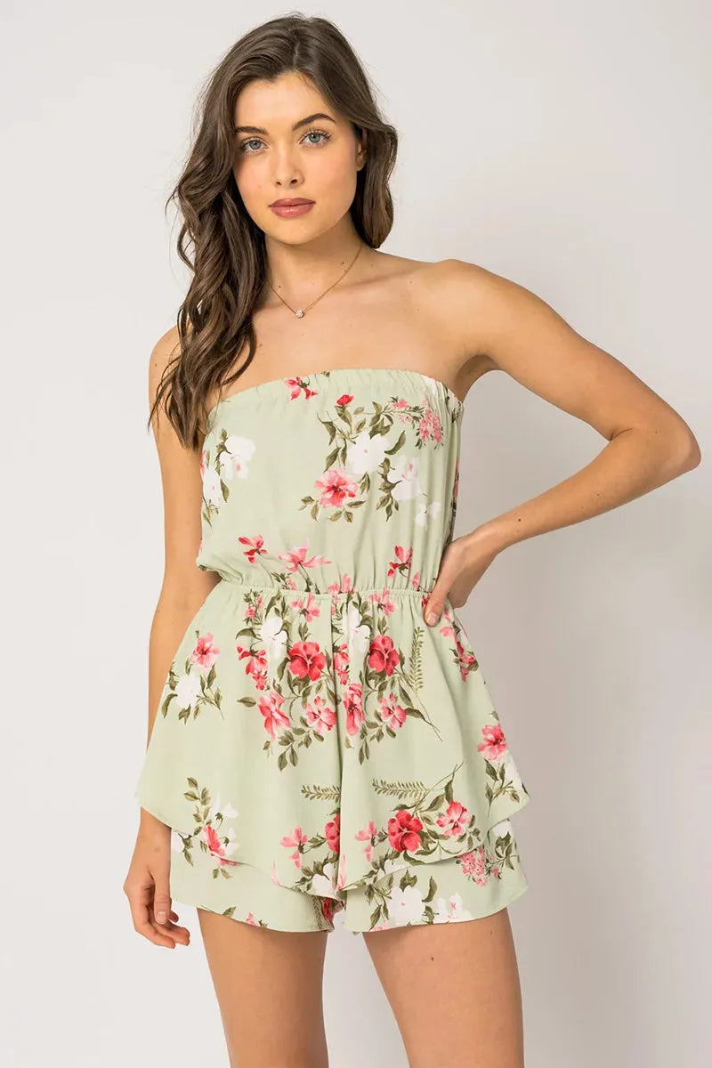 Floral Strapless Elastic Waist Layered Boho Style Romper