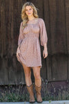 Apricot Floral Print Self-Tie Detail Balloon Sleeve Mini Dress