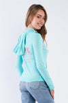 Hoodie Features: Solid aruba, long sleeve, "Love" graphic detail, attached hood, adjustable drawstring, open front, front zipper closure, two split pockets, thumb hole, unlined, soft material, moderate stretch, fitted, comfy, casual,Model is 5'10" and wearing size Small (Waist: 26", Bust: 33B, Hips: 35")Item Measurements: Length: 23" Bust 36"Item comes pre-packed with hang tagsTrue to size