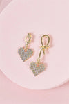 Asymmetrical Gold Rhinestone Heart Dangle Earrings
