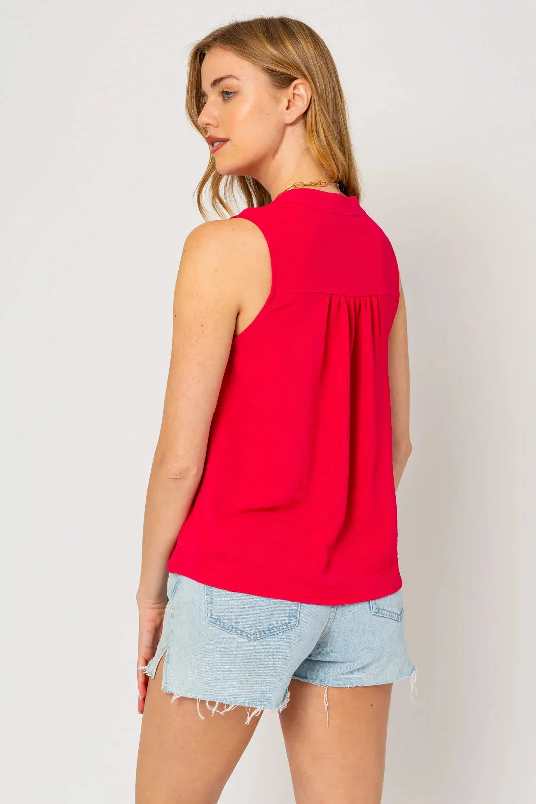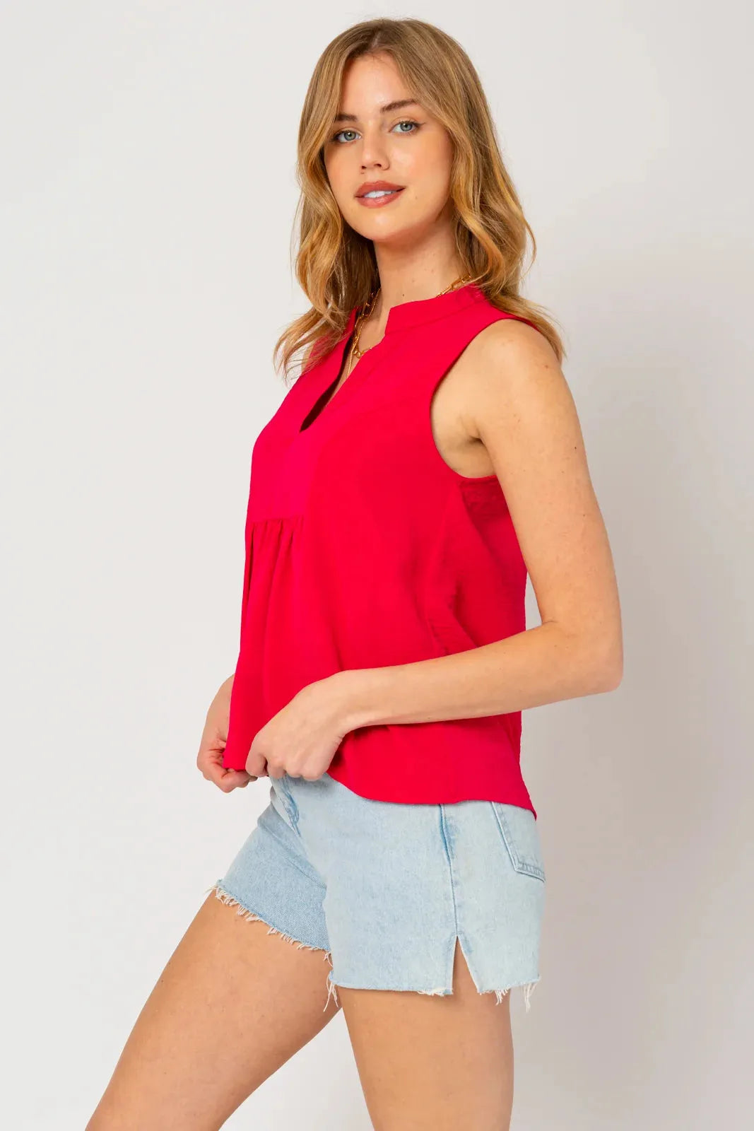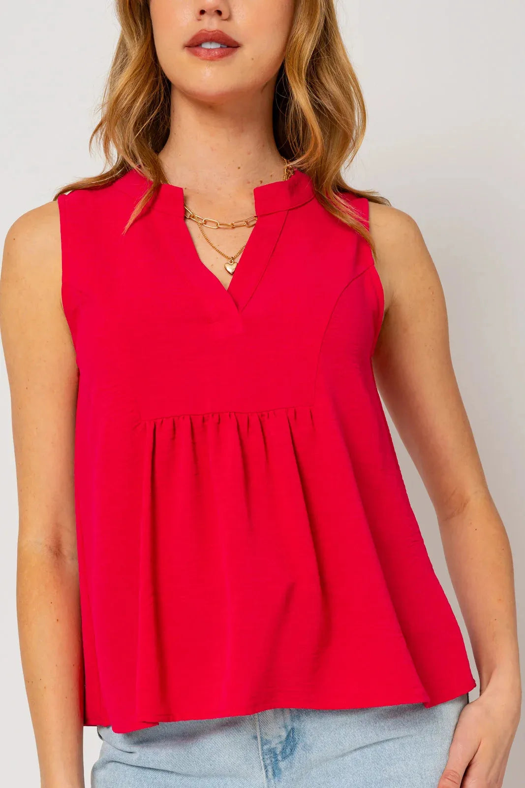 Sleeveless V-Neck Flowy Top