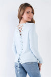 Baby Blue Long Sleeve Scoop Neck Lace Up Back Top