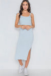 Baby Blue Ribbed Crop Top Midi Skirt Two Piece Set /3-2-1