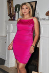 🖤Item features: Fuchsia, solid, silk effect, sleeveless, square neck, adjustable spaghetti straps with criss-cross back, gathered side and back detail, open back, fitted, mini length, partly lined, stretchy, hot and sexy, elegant, special occasion, night out, date look, chic, Valentine's Day dress