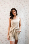 Beige Knit Tank Top & Shorts Set /1-1-1