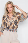 Beige Multi Print Bell Sleeve Crop Boho Top /1-3-2-1