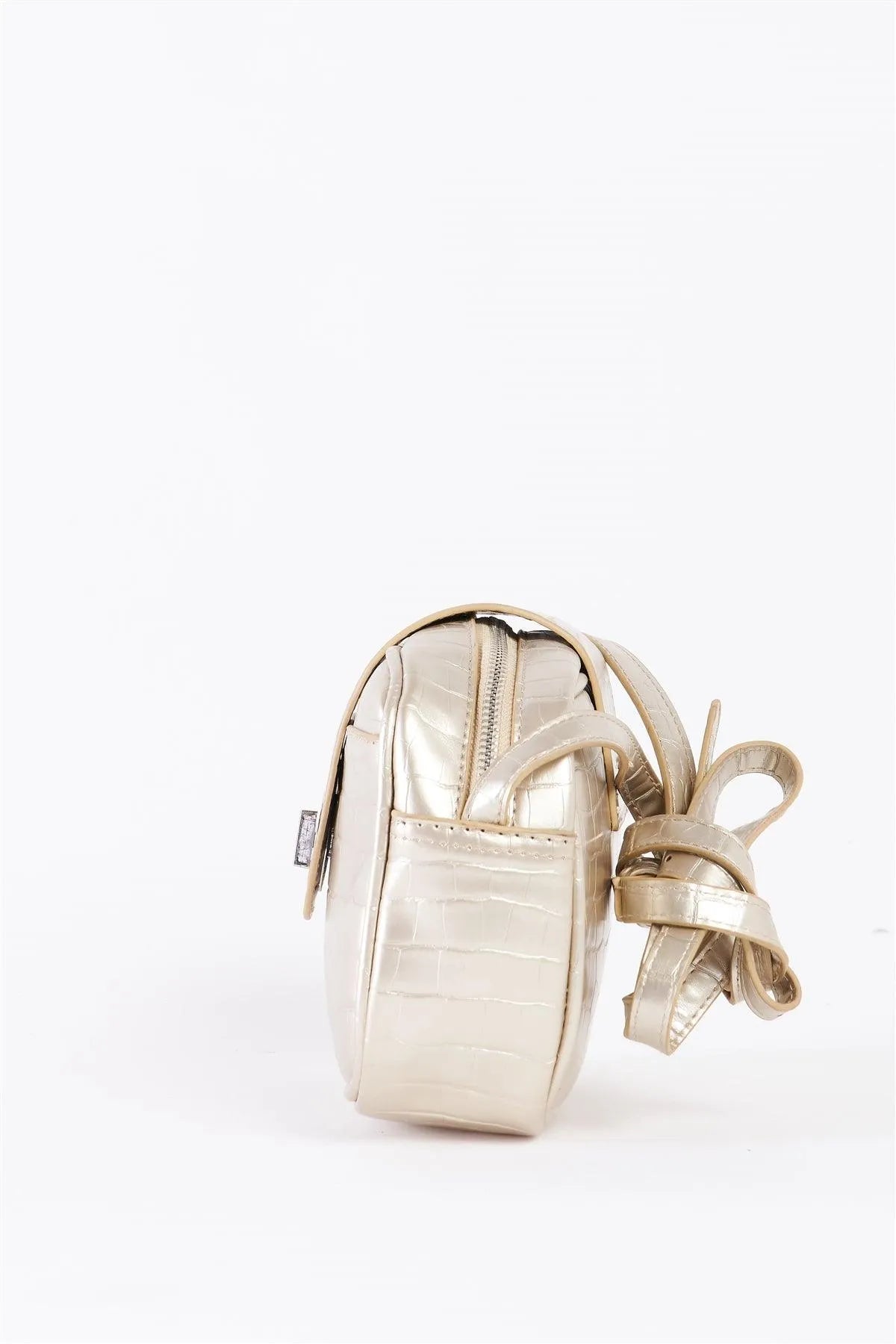 Beige Pearl Alligator Vegan Leather Rectangle Crossbody Bag /3 Bags