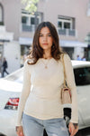 Beige Plain Second Skin Long Sleeve Basic Top /3-3
