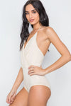 Beige Surplice Neckline Solid V-Neck Bodysuit /2-2-1