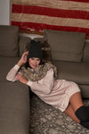 Black Bunny Ears Detail Woven Winter Beanie /3 Pieces