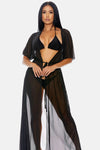 Woven Sheer Knit High Neck Side Slit Swim Cover Up Maxi DressVendor:HYFVE