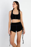 Black Contrast Stitch Zip-Up Racer Back Crop Top & Ruched Details Short Set /3-2-1