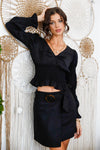 Hannah is 5'9" (Bust: 32B, Waist: 24", Hips: 36"). Model is wearing size S.