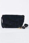 Black Faux Fur Hidden Magnetic Snap Button Closure Crossbody Bag / Clutch With Hidden Hand Strap Loop / 1 Bag
