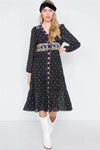 Black & Floral Embroidered Polkadot Tiered Babydoll Midi Dress /2-2-2