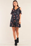 Black Floral Print Cut-Out Shoulder Mini Dress