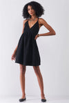 🖤 Item features: Black, solid color, geometric embroidery, v-neckline, sleeveless, adjustable shoulder straps, criss-cross back, flare cut, back hidden zipper and hook& eye closure, mini length, cute, trendy, casual, summer look