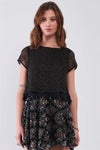 Black & Gold Thread Crew Neck Crochet Layered Short Sleeve Back Strap Detail Top /1-2-2-1