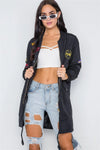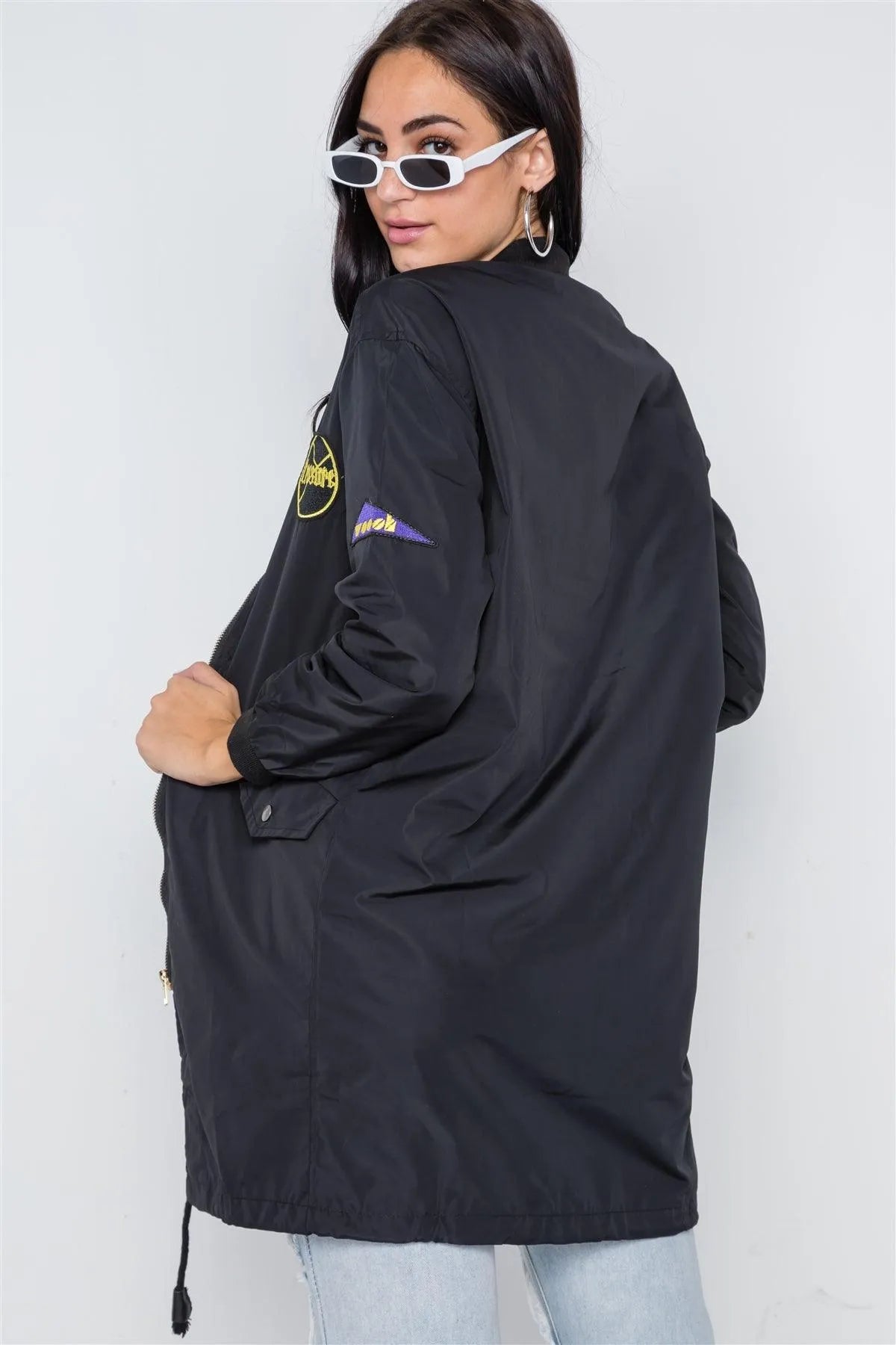 Black Graphic Patch Long Sleeve Bomber Jacket /2-2-2