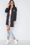 Jacket features: contrast ribbed trim, long sleeves, front pockets, front zip closure, multi patches allover, drawsring hem, linedModel is 5'9 wearing a size Small ( Waist: 24", Bust: 32A, Hips: 34")Size Small Item Measurements: Length: 34", Bust: 40", Sleeves: 20"True to size Available in Olive