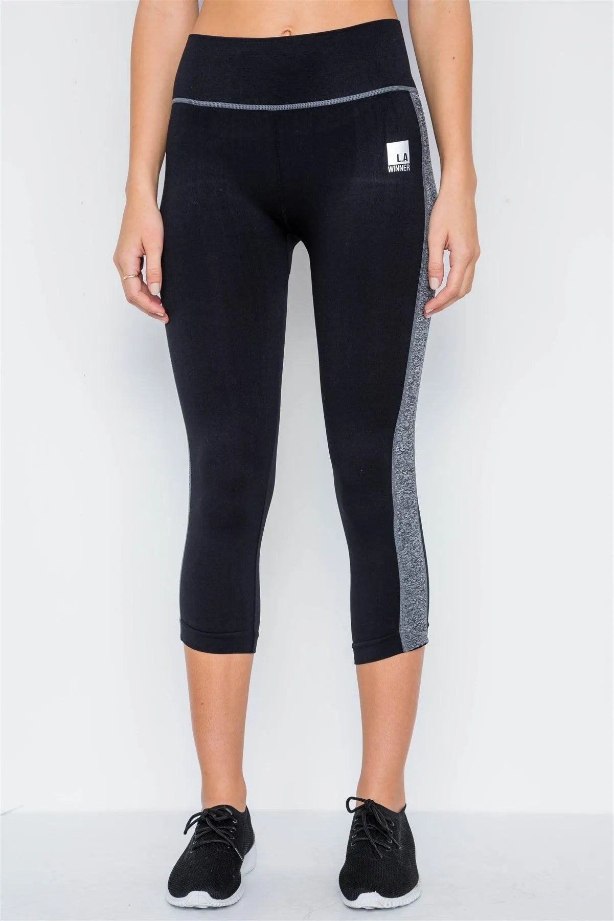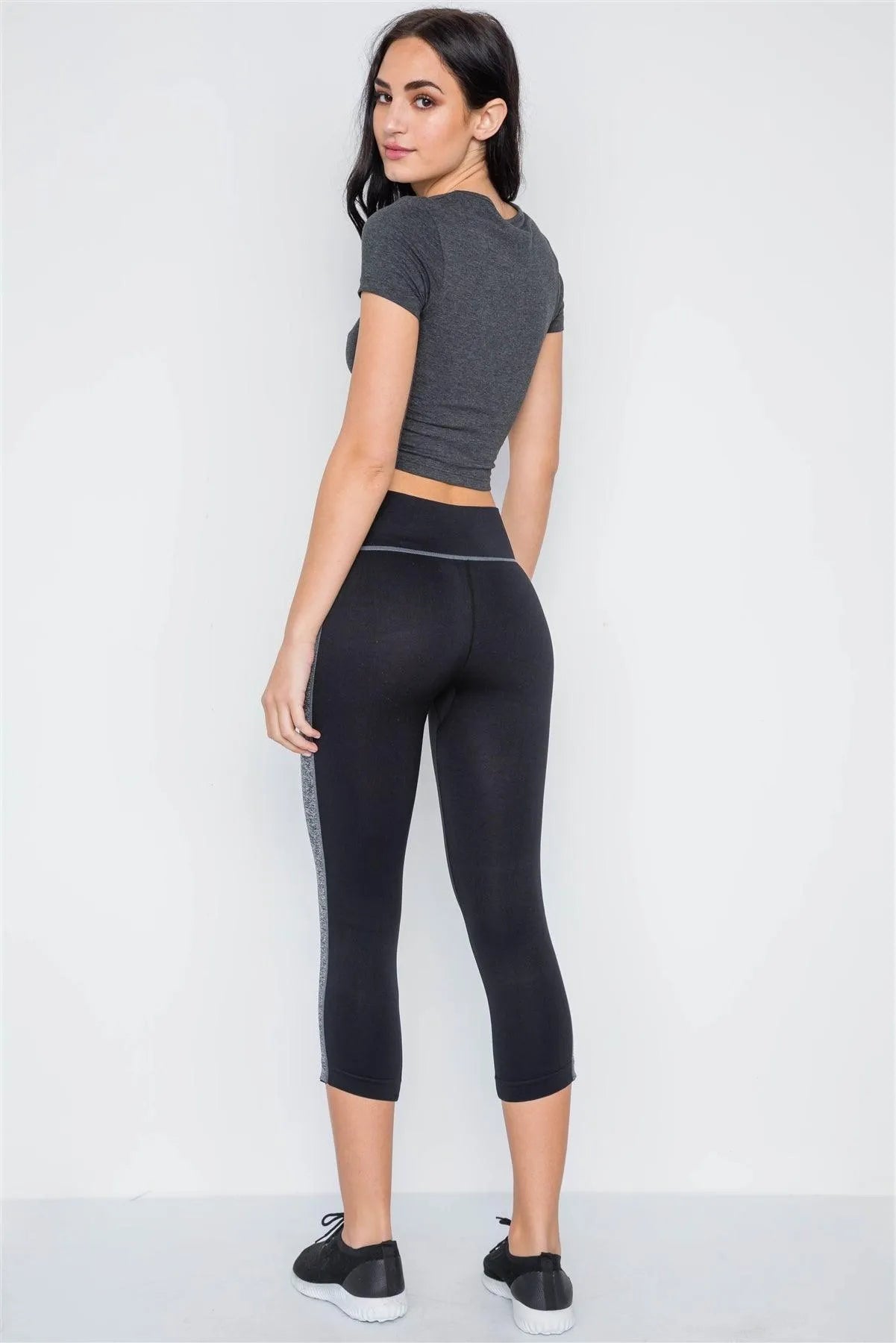 Black Grey Contrast Stripe Active Sporty Leggings /5-5