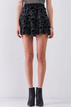 Black & Grey Rose Print Velvet Woolen Ribbed Elasticated Waist Flare Mini Skirt /1-2-2-1