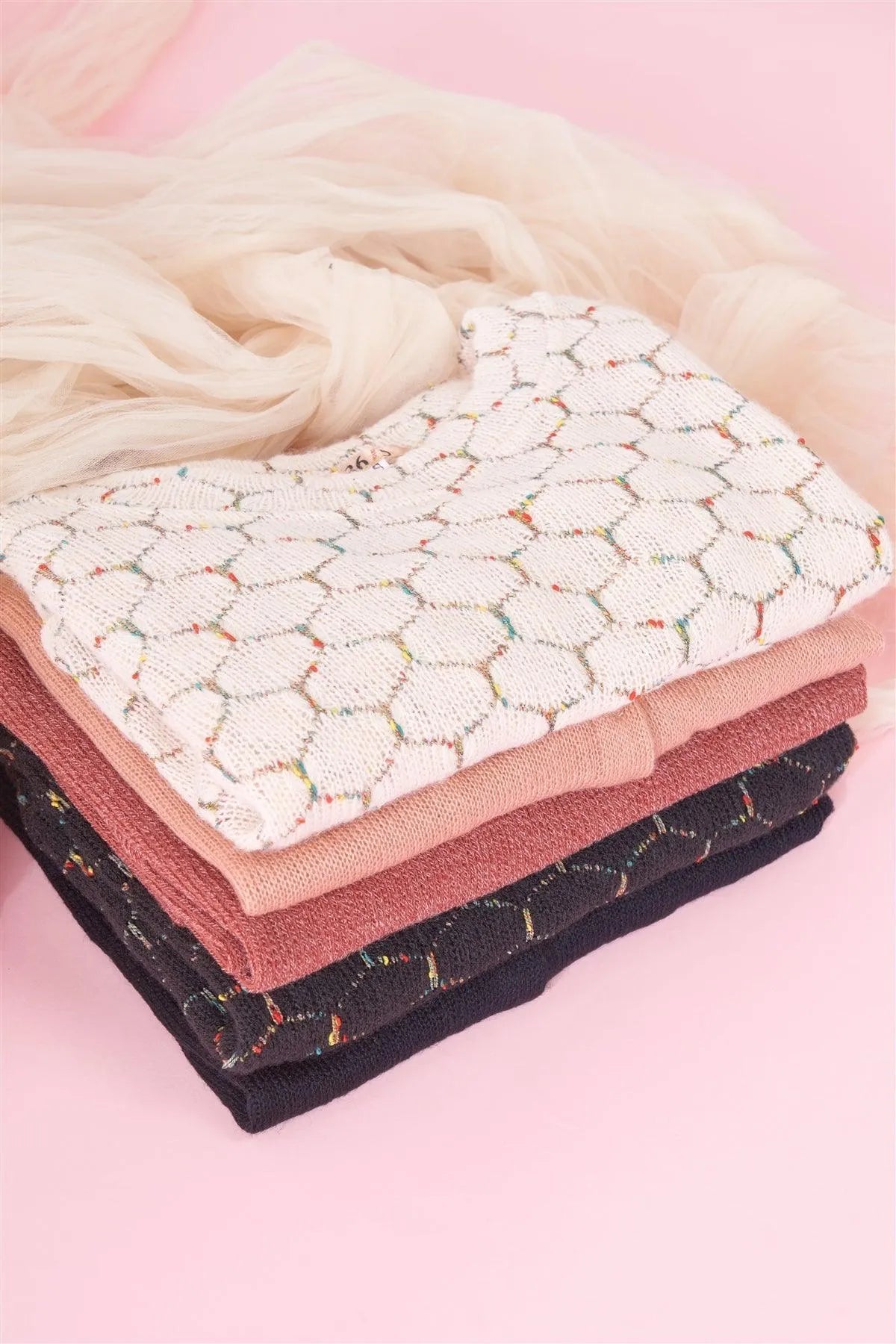 Black Hexagon Pattern Cropped Pullover Long Sleeve Knit Top /2-2-2