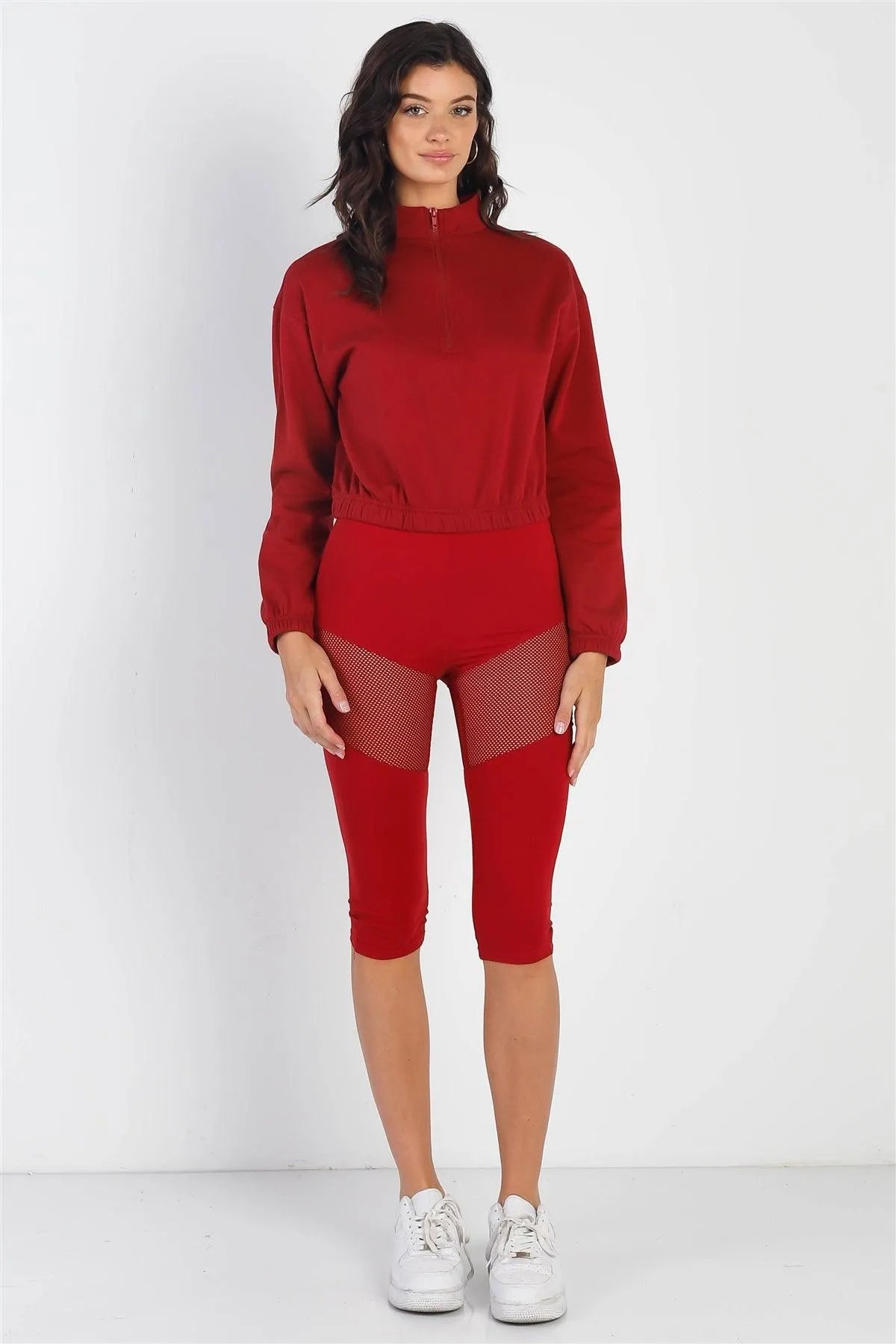 Red High Waist Sheer Mesh Cut-Ins Sports Midi Legging Pants /1-2-2-1