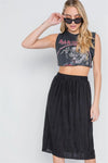 Elastic Waist Flowy Metallic Shiny Boutique Pleated Midi SkirtVendor:HYFVE