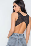 Black Knit Ribbed Open Back Sleeveless Bodysuit /3-2-1