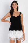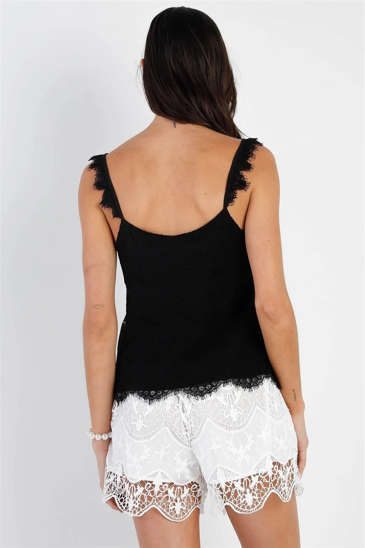 Black Lace Ruffle Detail Strap Cami Top /1-2-2-1