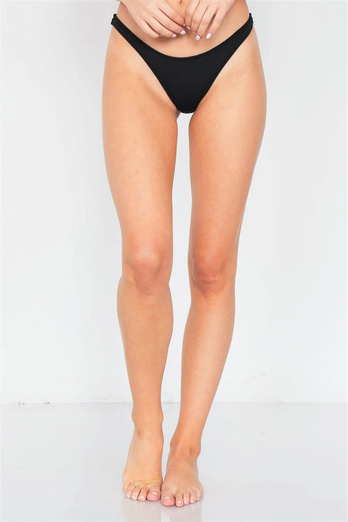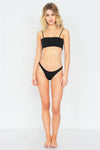 Black Lace-Up Bandeau High-Waist Cheeky Bikini Swimsuit Set /3-2-1